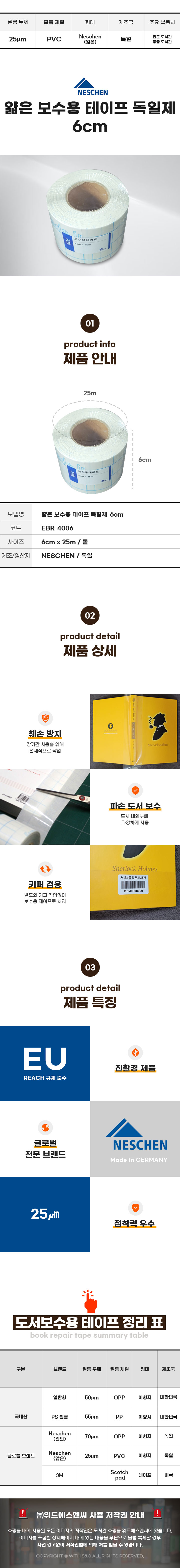 얇은 보수용 테이프 독일제-6cm